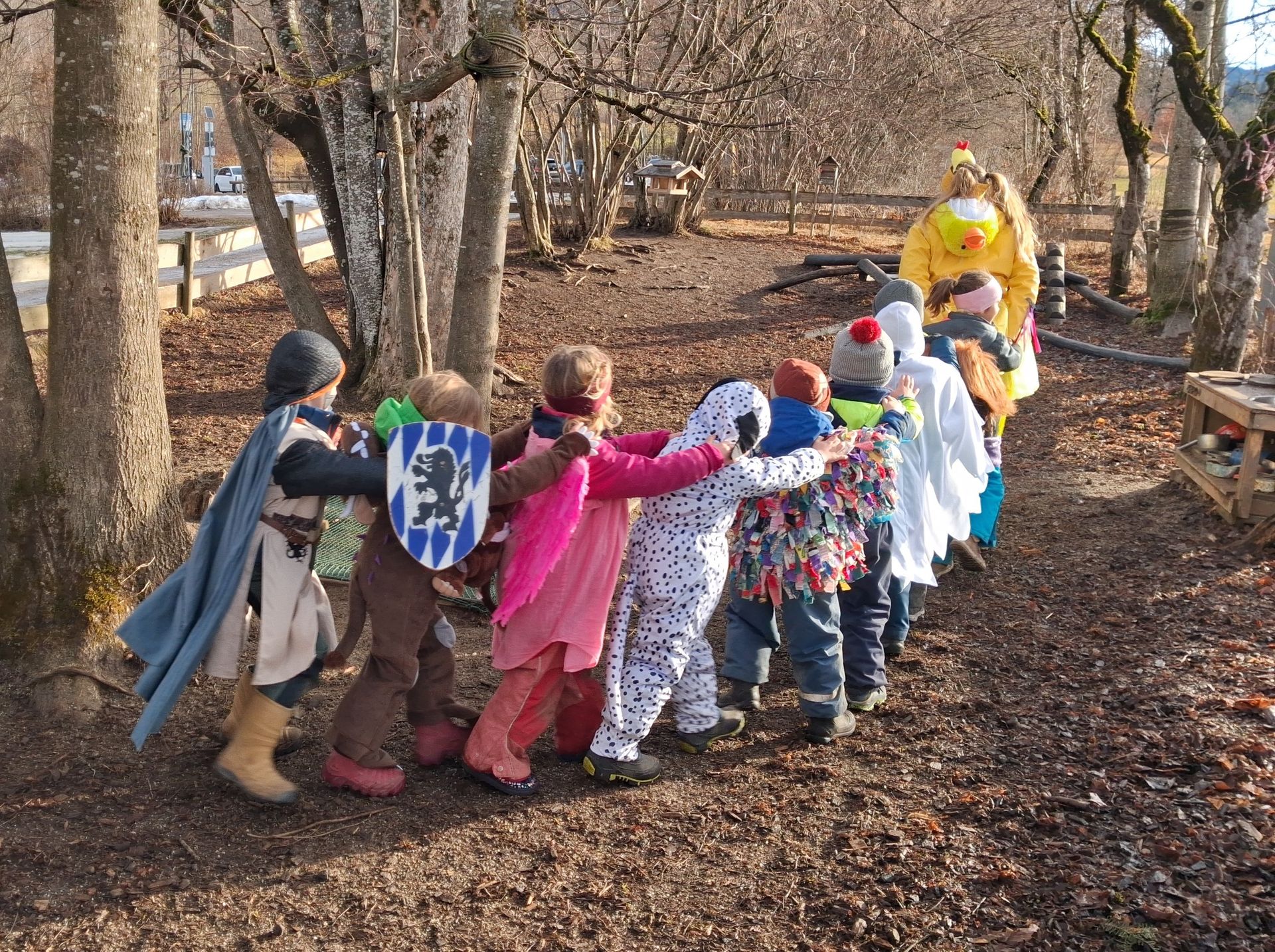 Freitag- Faschings-Vogelrallye mit verschiedenen Stationen und mit der Schokokussschleuder als krönenden Abschluss